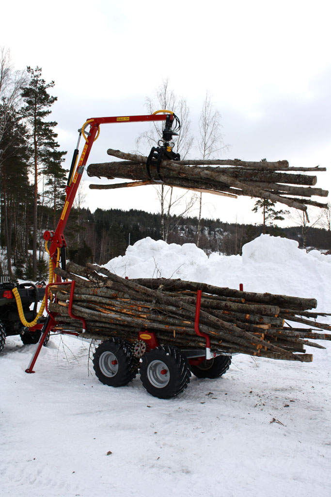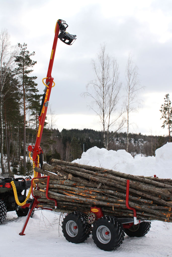 Vår ATV timmergrip kan monteras på kranen på våra miniskotare, för lastning och tömning vid transport av till exempel ris, sly och material som uppstår vid röjning och gallring i skog och natur.